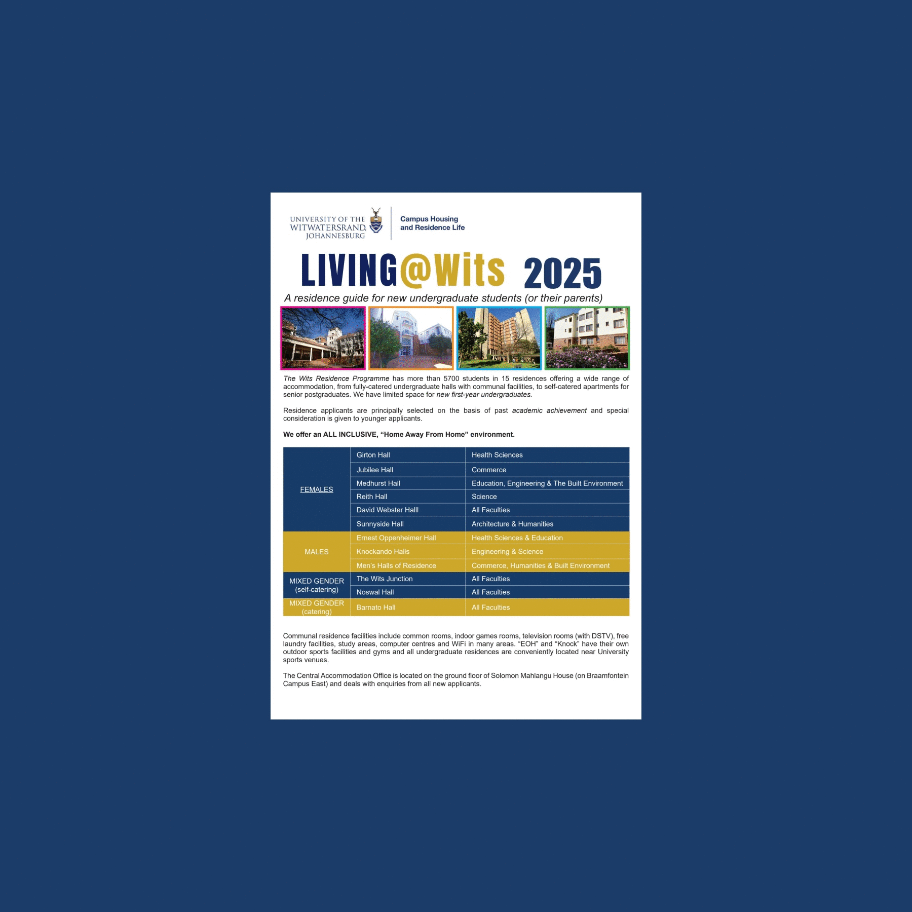 - Free Wits bus service links all residences to nearby campuses and Rosebank Mall.