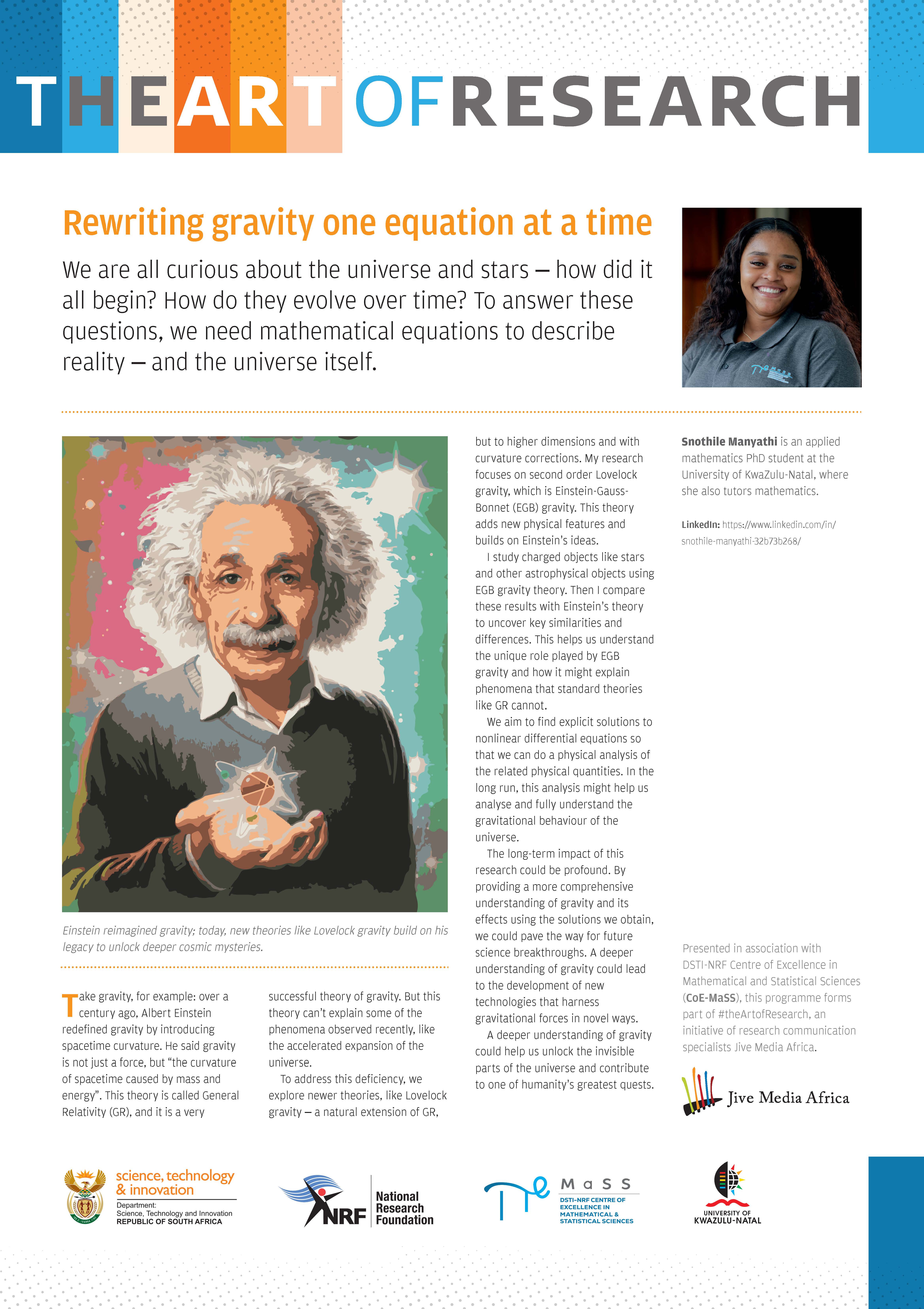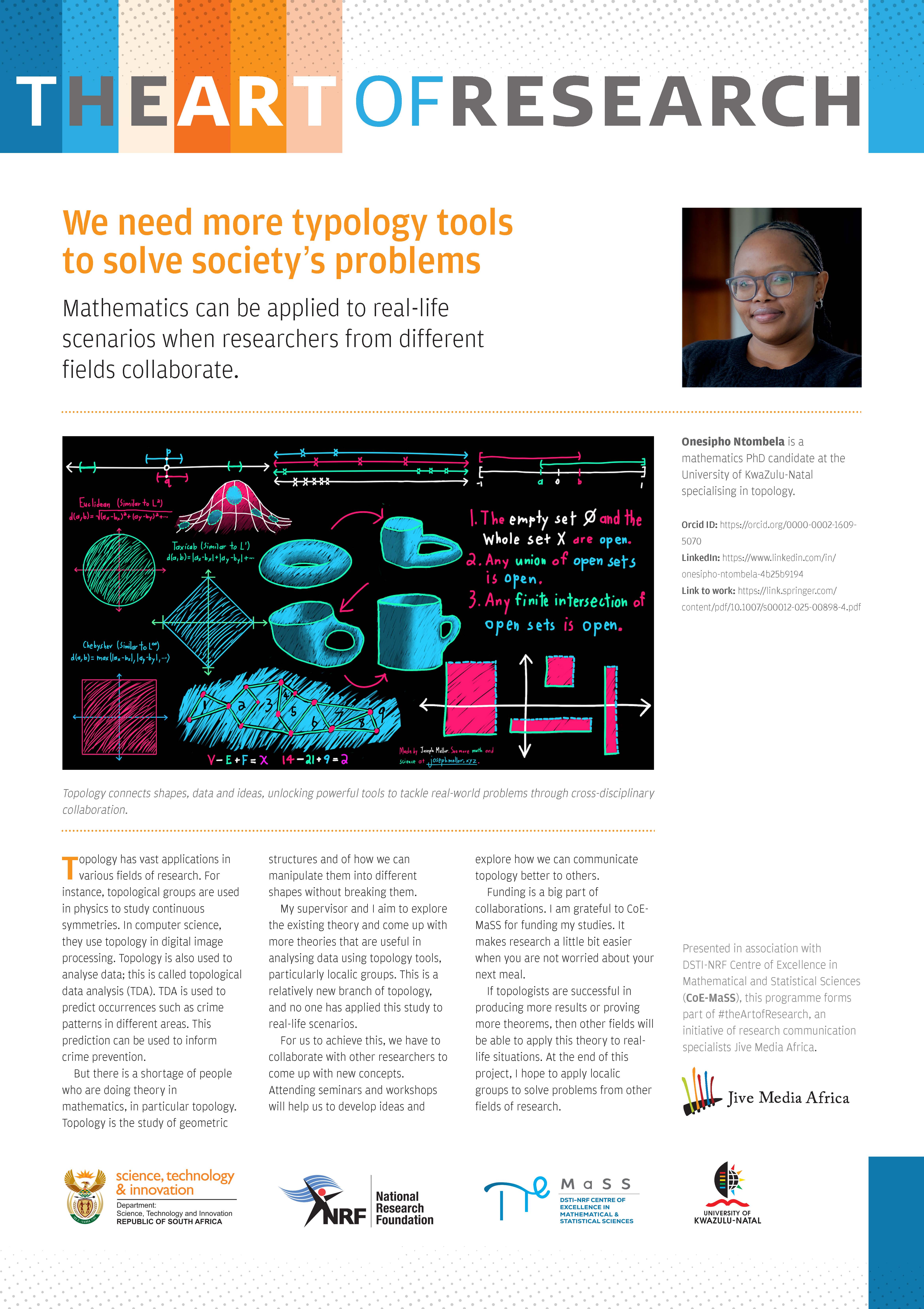 This page contains a series of research posters generated from the CoE-MaSS Annual Research Meetings in September 2018 and 2025, and the Popular Writing Workshop in 2021, in conjunction with Jive Media Africa. The aim is to highlight our CoE-MaSS Emerging Rresearchers, provide them with online exposure, and stimulate public awareness of the day-to-day relevance of their scientific research.