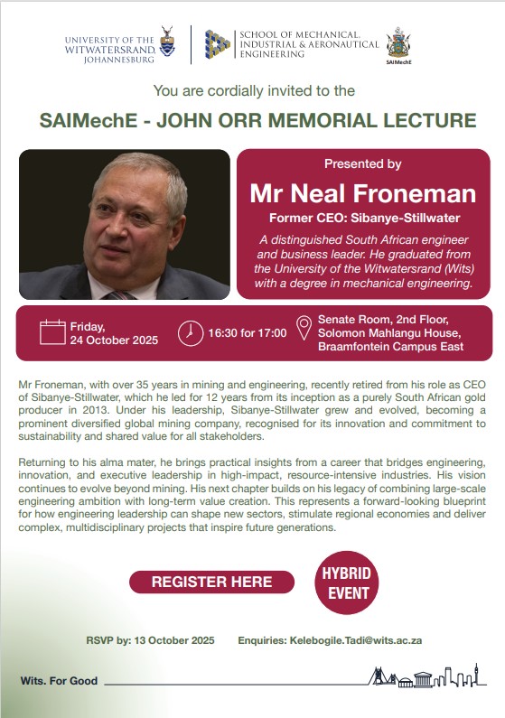 Presented by Mr Froneman, a distinguished South African engineer and business leader.