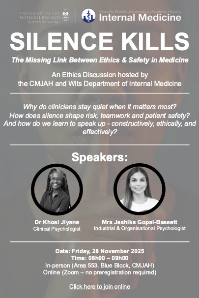 The CMJAH and Wits Department of Internal Medicine is hosting an ethics meeting.