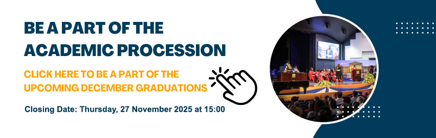 - After the ceremony, proceed to meet your guests outside the Great Hall and have your graduation photos taken by the official University photographer in the Exams Hall on the second floor of the Robert Sobukwe Building.