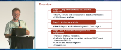 Caption: Professor Matthew Chersich presenting on the statistical analysis steps used to calculate the climate impact attribution